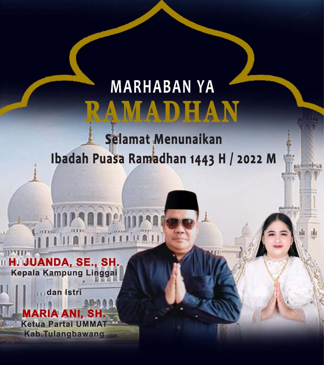 Tulang Bawang (MDSnews) – Kepala kampung Hi Juanda SE,SH beserta istrinya Hj Maria Arni SH, yang merupakan ketua partai umat khususnya kabupten tulang bawang mengucapkan selamat menunaikan ibadah puasa.