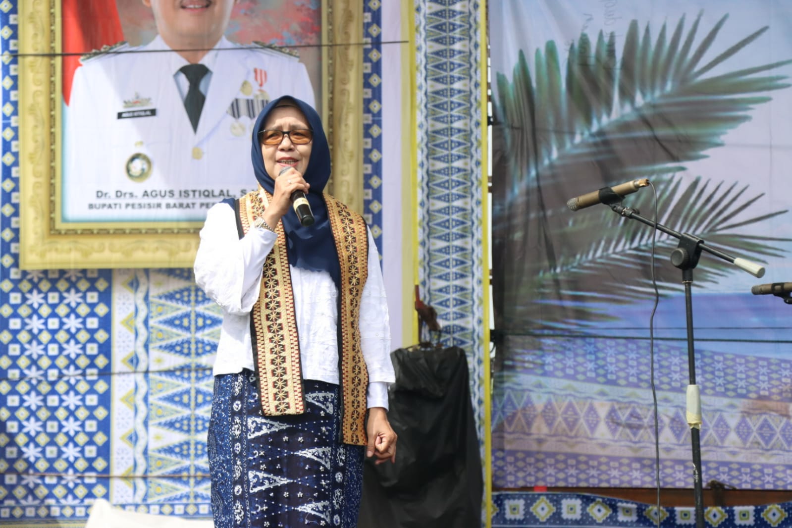 Ketua TP PKK Pesisir Barat Hj Septi Istiqlal berharap dengan diselenggarakan nya lomba Paduan Suara di Krui Fair 2022 ini memberikan warna tersendiri dalam menambah khasanah mencintai dan mempromosikan Lagu Daerah. (Frans)