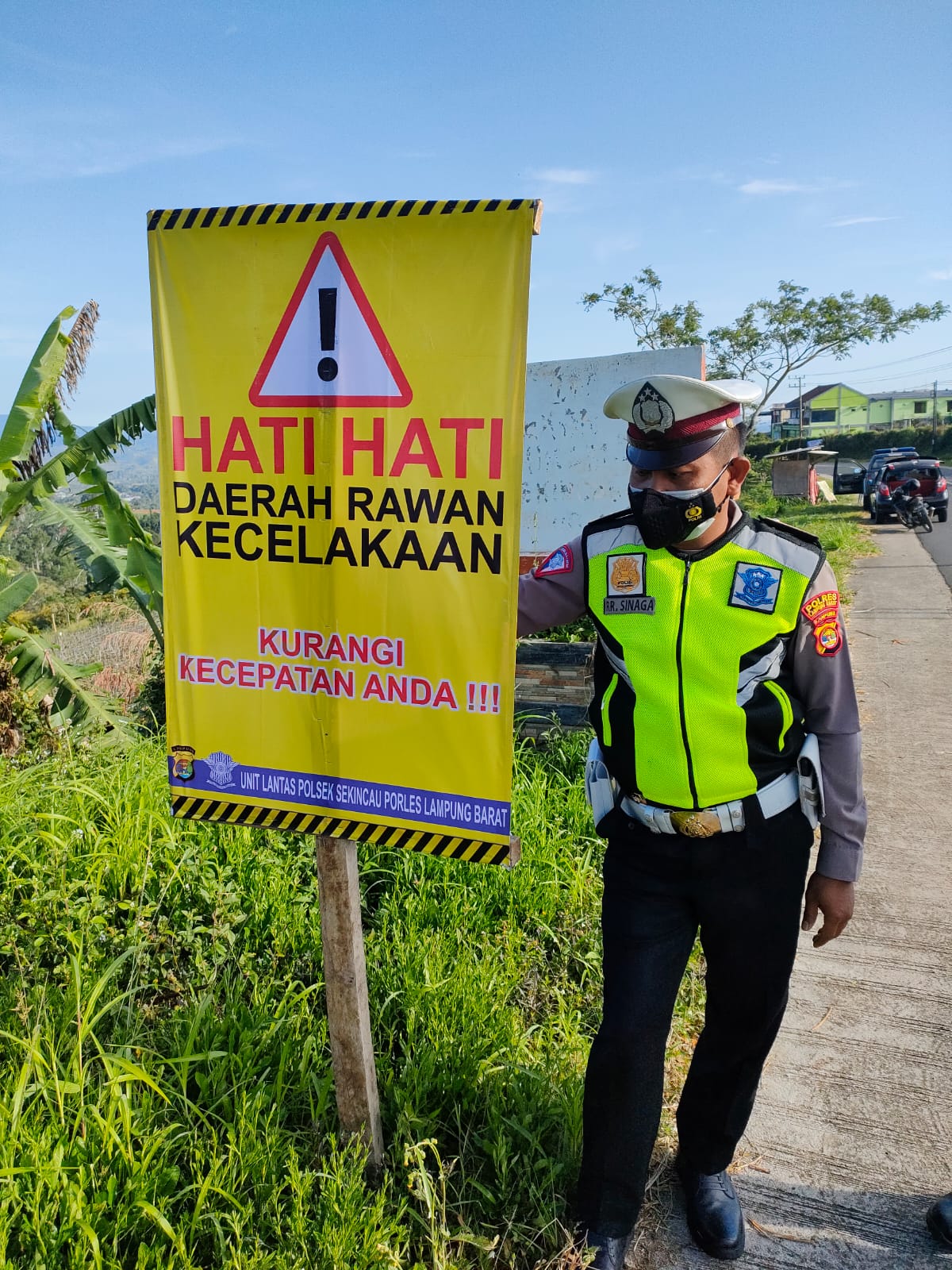 Lampung Barat (MDS News) – Salah satu untuk menekan angka kecelakaan lalu lintas di Wilayah Polsek Sekincau, Kanit Lantas Polsek Sekincau memasang beberapa banner imbauan di sepanjang jalur Black Spot yang ada diwilayahnya, Kamis (16/6/22).