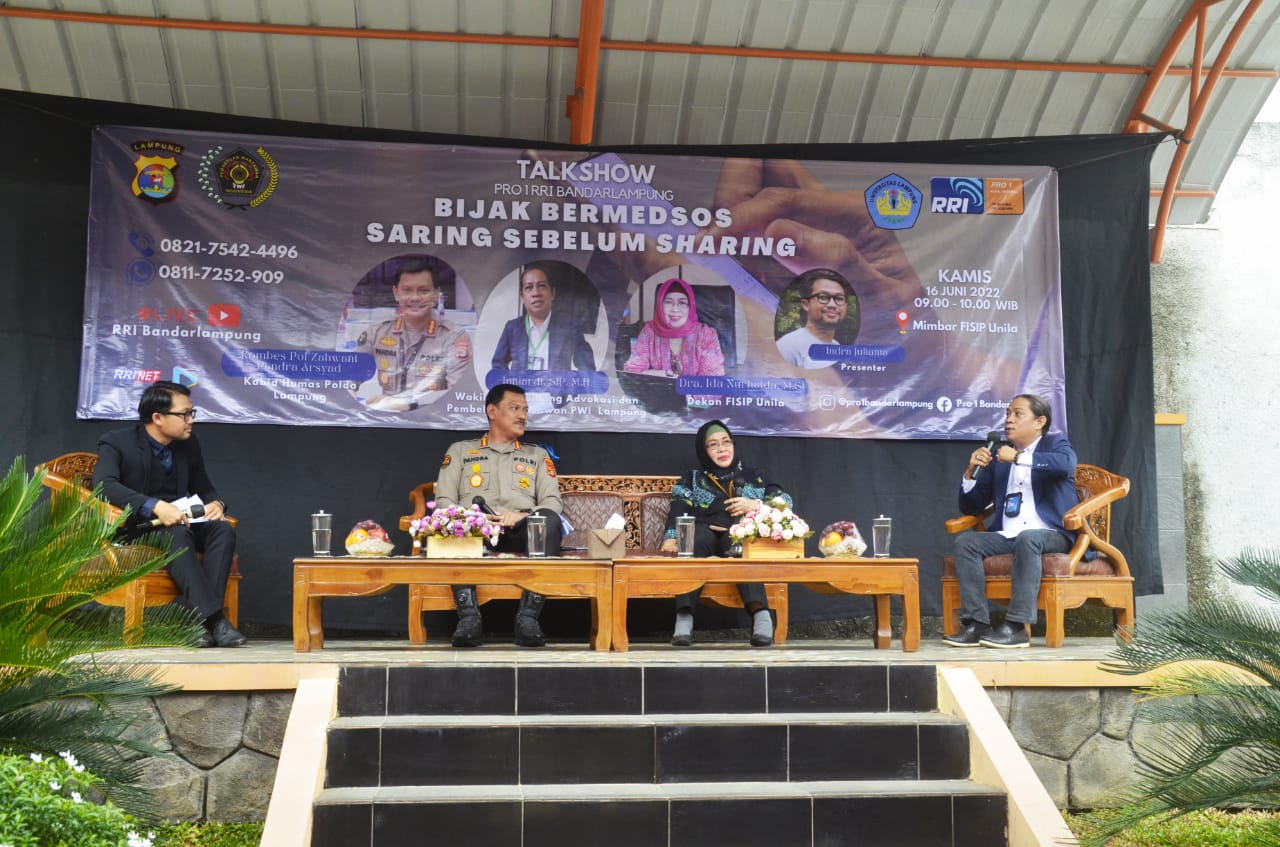 Dialog yang berlangsung selama Satu Jam ini disiarkan secara langsung melalui Programa 1, dan direlay RRI SP Way Kanan, serta diunggah melalui akun YouTube RRI RRI Bandar Lampung. Dialog menghadirkan Tiga narasumber, masing-masing Dekan FISIP Unila, Dra. Ida Nurhaida., M.Si, Kabid Humas Polda Lampung, Kombes Pol Zahwani Pandra Arsyad, dan Wakil Ketua Bidang Advokasi dan Pembelaan Wartawan PWI Lampung, Juniardi.