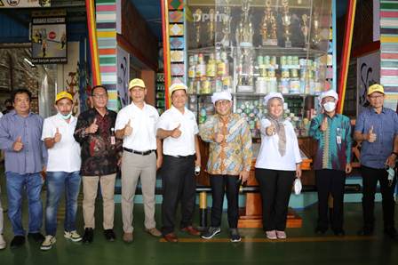 Mendes Halim dan Wagub Nunik juga meninjau langsung pabrik pengolahan dan pengalengan nanas serta proses muat nanas kaleng yang akan di ekspor nantinya.
