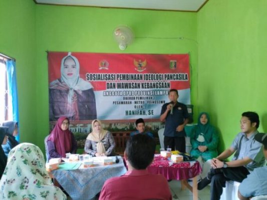 “Kami di DPRD Lampung sebagai wakil masyarakat, mengajak semua lapisan, dari ras, suku, agama, dan golongan untuk bersama – sama membumikan pancasila dalam kehidupan sehari – hari secara utuh,” kata Ketua Fraksi PKB DPRD Lampung, Hanifah. Saat menggelar sosialisasi Pembinaan Ideologi Pancasila dan Wawasan Kebangsaan (IP-WK). Dihadapan masyarakat Desa Sukajaya Marga Punduh Kabupaten Pesawaran. Jumat (08/07/2022)