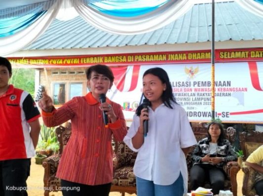 Mesuji — Tidak ada ruang bagi paham radikal di tanah air Indonesia, khususnya Lampung dan Kabupaten Mesuji. Hal tersebut, sampaikan Ketua BAGUNA DPD PDIP Lampung, Budhi Condrowati, saat menggelar sosialisasi pembinaan Ideologi Pancasila dan Wawasan Kebangsaan (IP-WK). Dihadapan masyarakat, Desa Bukoposo RT 02, RW 02, Kecamatan Way Serdang, Kabupaten Mesuji. Jumat (08/07/2022).