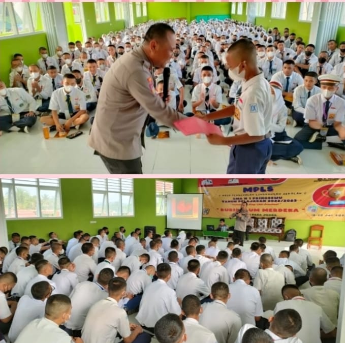 Pembekalan diberikan saat Ratusan siswa baru menjalani Masa Pengenalan Lingkungan Sekolah (MPLS) di sekolah setempat dan dipimpin oleh Kaur Bin Ops Sat Binmas Ipda Eko Sujarwo.