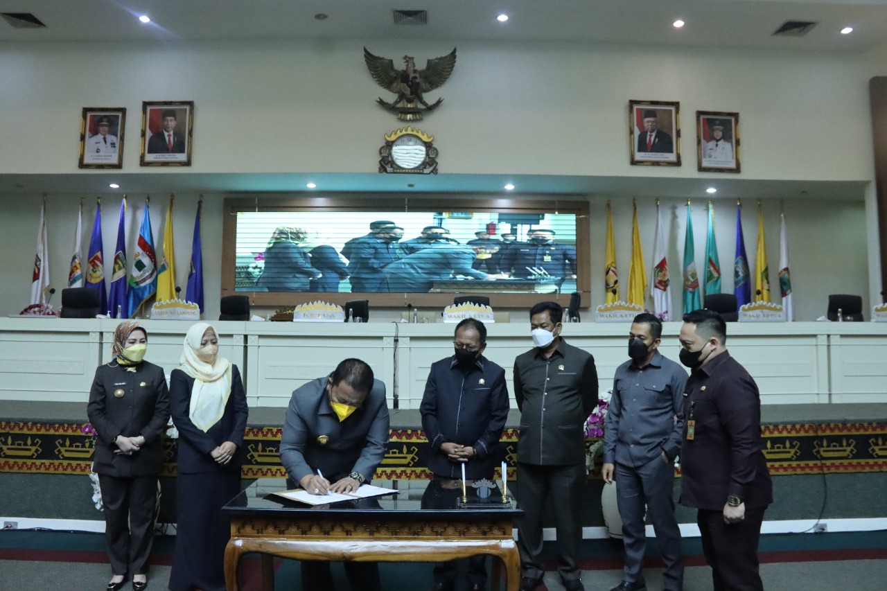 Didalam Rapat Paripurna juga dilakukan Penandatanganan Raperda tentang Pertanggungjawaban Pelaksanaan Anggaran Pendapatan dan Belanja Daerah Provinsi Lampung Tahun Anggaran 2021 oleh Gubernur Lampung bersama Ketua dan Wakil Ketua DPRD Provinsi Lampung.