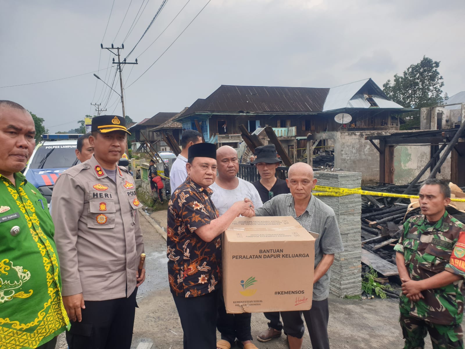 Lampung Barat (MDSnews) – Pemerintah Kabupaten Lampung Barat melalui Dinas Sosial memberikan bantuan kepada Warga Pekon Kenali yang terkena musibah kebakaran, di serahkan secara langsung oleh Wakil Bupati Lampung Barat Drs. Mad Hasnurin kepada keluarga korban Pekon Kenali, Kecamatan Belalau, Jum’at (22/7/22).