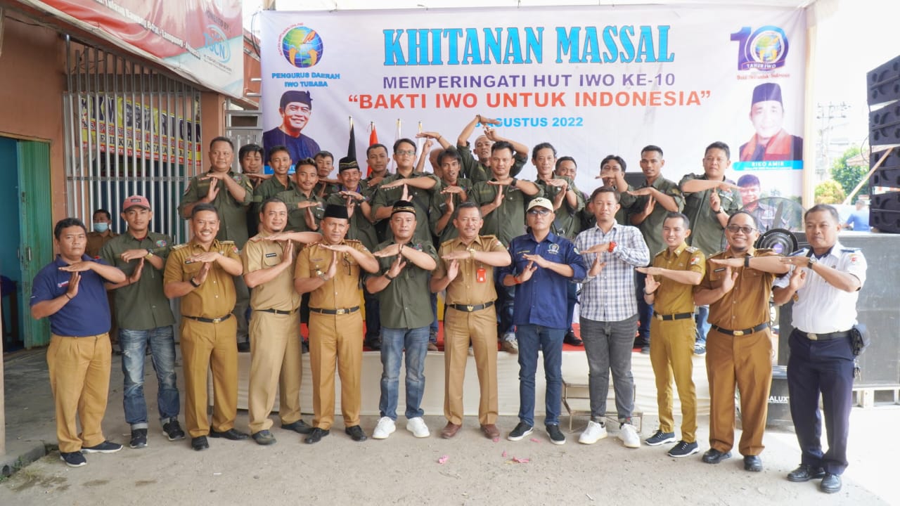 ” Alhamdulillah program kerja Agenda bhakti sosial kemanusiaan yang bersentuhan langsung dengan masyarakat diantaranya pada bulan April belum lama ini kami telah berbagi sebagian rizki kami menyalurkan paket sembako beras, minyak goreng, dan gula ke rumah-rumah warga. Kemudian, pada hari ini yang sama-sama kita saksikan di usia HUT IWO Ke-10, 8 Agustus 2022 IWO Tubaba bekerja sama dengan Pemkab Tubaba melalui Dinas Kesehatan melakukan kegiatan khitanan massal yang di ikuti 30 peserta anak -anak yang berasal dari keluarga kurang mampu,”Paparnya.