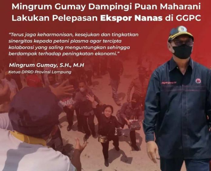 Lampung – Ketua DPRD Lampung dampingi Ketua DPR RI lakukan kunjungan kerja (Kunker) serta pelepasan ekspor nanas oleh PT. Great Giant Pineapple (GGP) yang dilaksanakan di Gudang Factory GGP, Rabu (24/08)