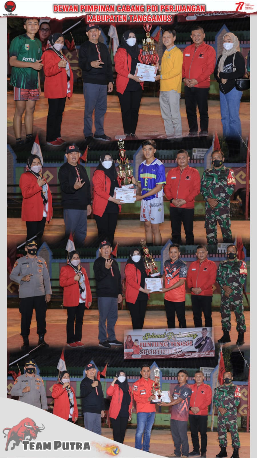 Dalam turnamen yang diselengarakan selama 7 hari tersebut, keluar sebagai pemenang di Tim Putra, Juara Satu Putra PKB dari Gunung Meraksa Kecamatan Pulau Panggung, Juara Dua Tim Armajaya dari Argo Mulyo, Kecamatan Sumberejo, Juara Tiga Tim Buana Putra Club dari Gisting, Kecamatan Gisting, Juara Empat Tim Wirasena dari Gisting, Kecamatan Gisting.