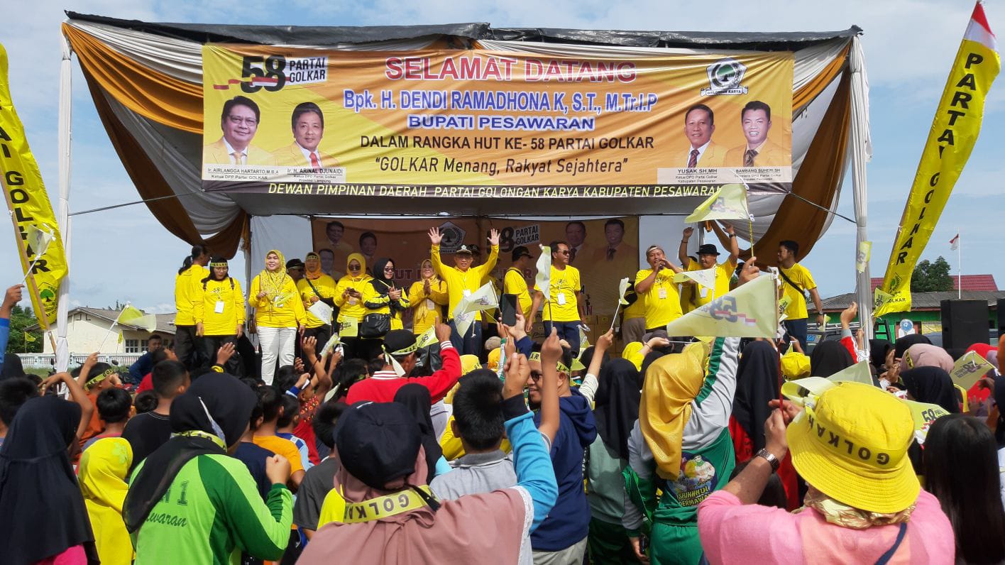 Terpisah, Bupati Kabupaten Pesawaran Dendi Ramadhona dalam sambutannya menyebutkan, Partai Golkar 58 tahun berdiri merupakan Partai yang selalu hadir dan membangun NKRI.