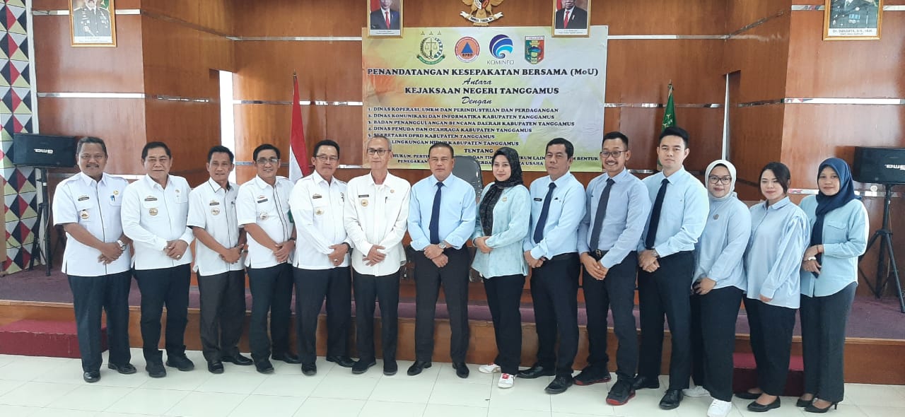 Tanggamus (MDSnews) – Kejaksaan Negeri (Kejari) Kabupaten Tanggamus menjalin kerja sama dengan Dinas Koperasi, UMKM serta Perindustrian dan Perdagangan Kabupaten Tanggamus, Dinas komunikasi dan Informatikan Kabupaten Tanggamus, BPBD Kabupaten Tanggamus, Dinas Pemuda dan Olahraga Kabupaten Tanggamus, Sekretariat DPRD Kabupaten Tanggamus serta Dinas Lingkungan Hidup Kabupaten Tanggamus, di Aula Kejari Tanggamus, Kamis (20/10/22).