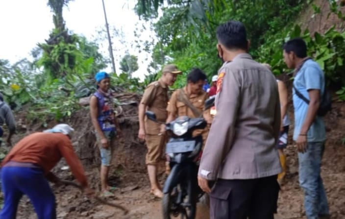 “Sambil menunggu alat berat, warga bergotong royong dengan menggunakan alat seadanya untuk membersihkan tanah longsor agar dapat dilewati kendaraan,” Jelasnya.