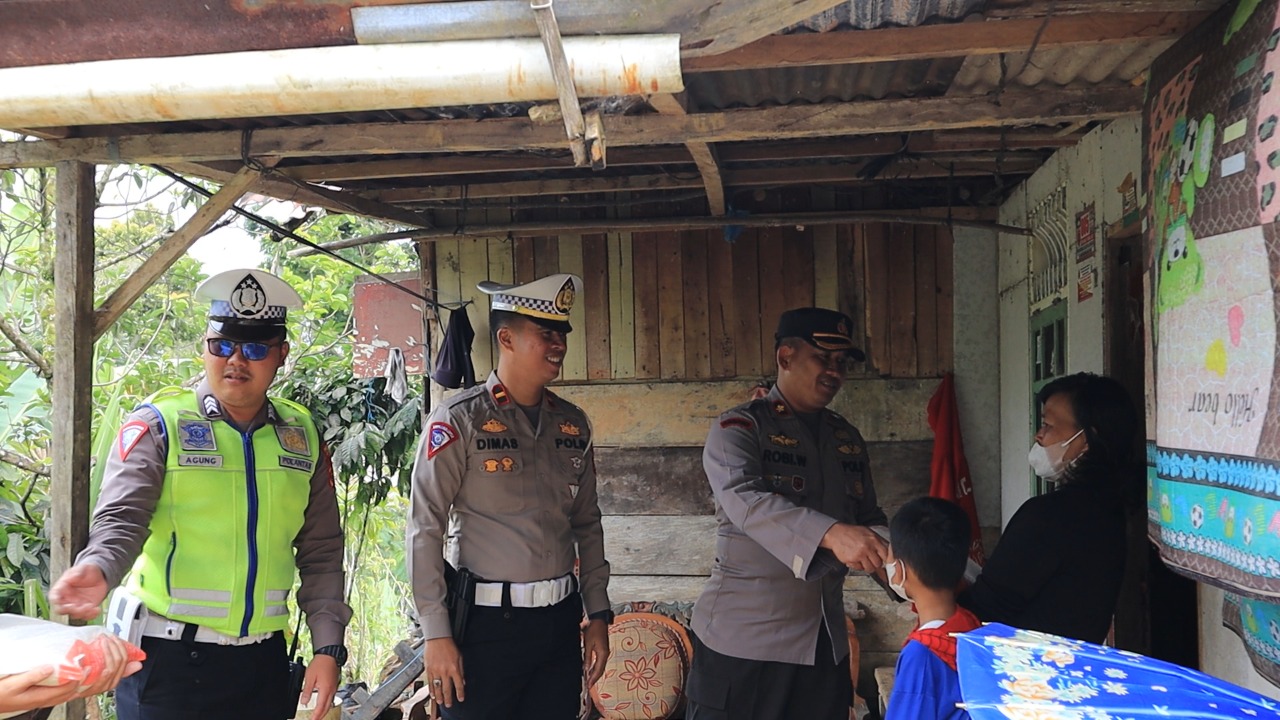 Pembagian bansos berupa beras, langsung diberikan oleh Waka Polres Lampung Barat Kompol Robi bersama Kanit Regident Sat Lantas Res Lambar Ipda Dimas Afditya R, S.E, M.M.
