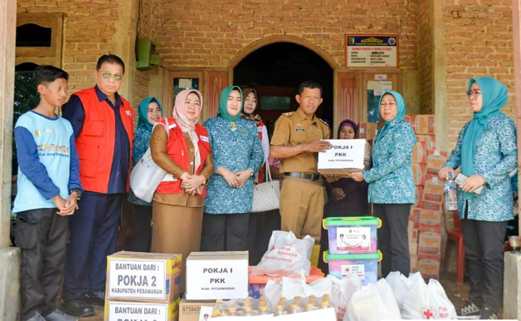 Pesawaran (MDSnews) – Tim Penggerak (TP) PKK Pesawaran bersama Darma Wanita Persatuan (DWP) dan PMI Kabupaten Pesawaran salurkan bantuan kepada warga terdampak banjir.