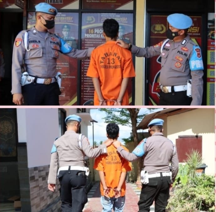 Untuk mempertanggung jawabkan perbuatannya itu, polisi menjerat tersangka dengan Pasal 76D Jo Pasal 81 Undang-Undang RI Nomor 17 tahun 2016 tentang Perubahan Atas Undang-Undang Nomor 23 tahun 2002 tentang Perlindungan Anak.