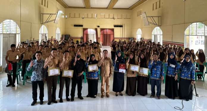 Ketua DPRD Lampung Mingrum Gumay menggelar sosialisasi Pembinaan Ideologi Pancasila (PIP), di SMA N 1 Kota Gajah, Jum’at (17/02/23).