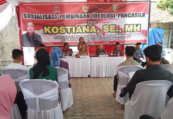 “Pancasila merupakan pandangan hidup bangsa yang memiliki makna bahwa, segala kegiatan kehidupan bangsa Indonesia sehari-hari harus sesuai dengan sila-sila yang ada dalam Pancasila. Oleh sebab itu, Pancasila sebagai inti dari nilai-nilai budaya bangsa Indonesia disebut sebagai cita-cita moral bangsa,” Kata Ketua Fraksi PDIP DPRD Provinsi Lampung, Kostiana. Saat mensosialisasikan Pembinaan Ideologi Pancasila, dihadapan masyarakat, Waykandis, Tanjung Senang, Sabtu (11/03/2023).