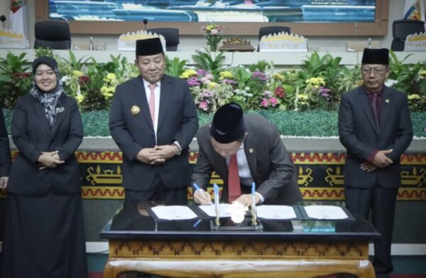 Bandar Lampung — Anggota V BPK RI selaku Pimpinan Keuangan Negara V Ir. H. Ahmadi Noor Supit menyerahkan Laporan Hasil Pemeriksaan BPK RI atas Laporan Keuangan Pemerintah Daerah (LKPD) Provinsi Lampung Tahun Anggaran 2022 kepada Gubernur Lampung yang disaksikan Ketua DPRD Provinsi Lampung dalam Rapat Paripurna Istimewa DPRD Provinsi Lampung, di Ruang Sidang DPRD Provinsi Lampung, Senin (08/05/2023).