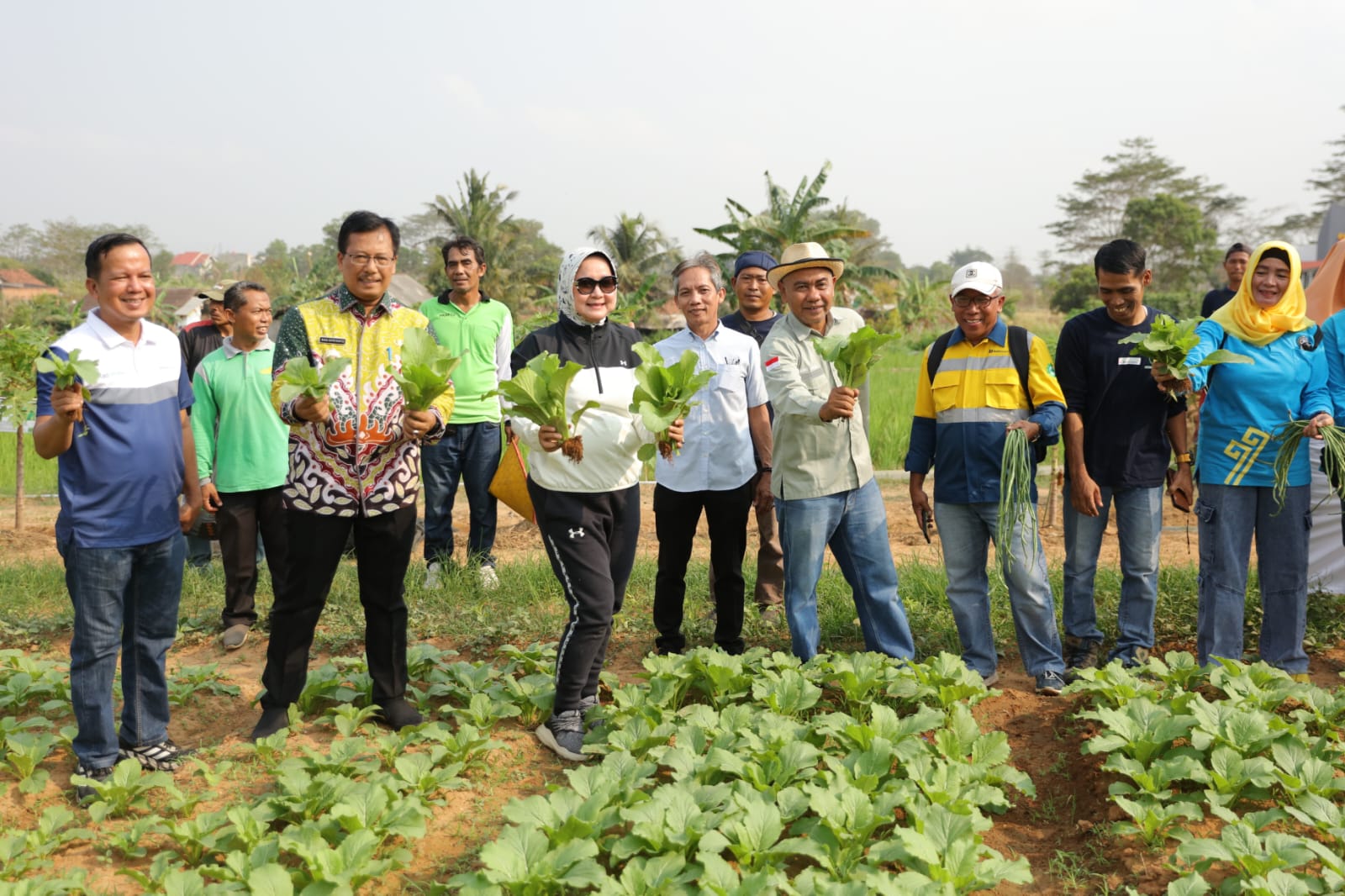 LAMPUNG SELATAN – Ketua Tim Penggerak PKK Provinsi Lampung Ibu Riana Sari Arinal melakukan panen buah dan sayur di Kebun PKK Agropark Lampung, Sabah Balau, Kecamatan Tanjung Bintang, Kabupaten Lampung Selatan, Jumat (13/10/2023).