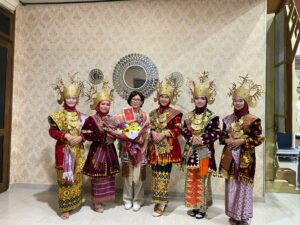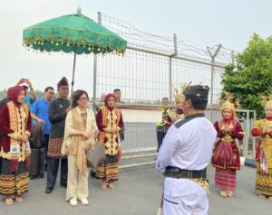 LAMPUNG SELATAN (MDSNews) – Perangkat Adat dan Masyarakat Adat Kerajaan Adat Paksi Pak Sekala Brak, Kepaksian Pernong Lampung menyambut tamu Agung Prof. dr. Ova Emilia, M. Med, Ed., Sp. OG (K)., Ph.D. Rektor Universitas Gajah Mada (UGM) beserta Jajaran, di Bandara Raden Inten II Lampung. Sabtu (14/10).