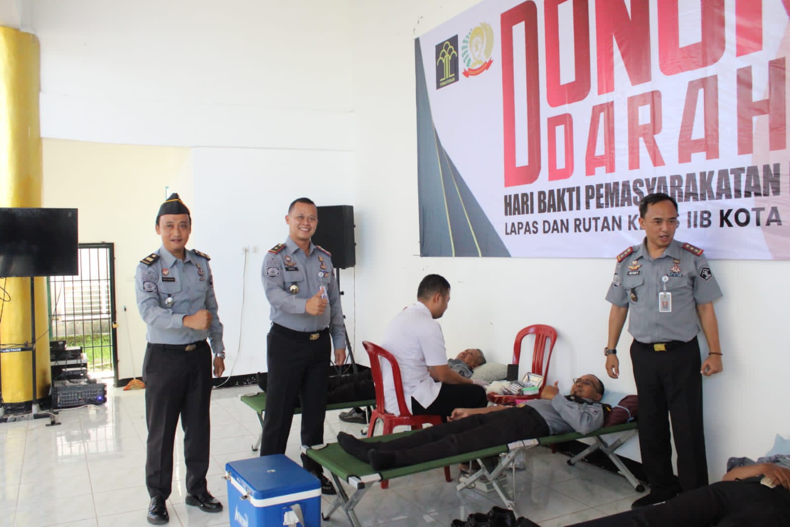 Kegiatan ini berkolaborasi dengan Unit Transfusi Darah (UTD) RSUD Kab. Pringsewu yang mengutus tim sebanyak 6 (enam) tenaga medis dipimpin oleh dr. Anton Kristian Natalia untuk membantu pelaksanaan donor darah yang diikuti oleh Kalapas beserta Karutan Kelas IIB KotaAgung di iringi pejabat struktural, staf dan petugas pengamanan masing-masing Uptd.