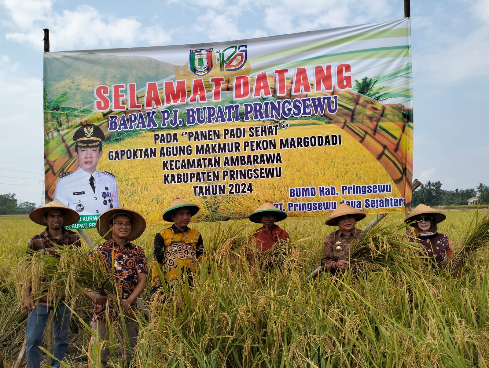 Pringsewu (MDSnews) – Pemerintah Kabupaten (Pemkab) Pringsewu mengapresiasi putra terbaik Pringsewu telah menerapkan Teknologi Budidaya Berbasis Mikroba (Teknologi BBM) sebagai suplemen Pupuk Organik, menghasilkan panen raya padi sehat non Residu di Pekon Margodadi Kecamatan Ambarawa Kabupaten Pringsewu, sukses memanen padi yang melimpah dengan masa tanam selama 80 hari, Jum’at (19/4/2024).