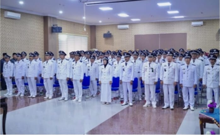 Pringsewu,(MDS news)— Pj Bupati Pringsewu Lampung Marindo Kurniawan Kukuhkan 112 dari 126 kepala pekon se-Kabupaten Pringsewu untuk perpanjangan masa jabatan selama dua tahun, yakni dari enam menjadi delapan tahun, pengukuhan di gelar di Aula Utama Pemkab setempat, Rabu (3/7/2024),