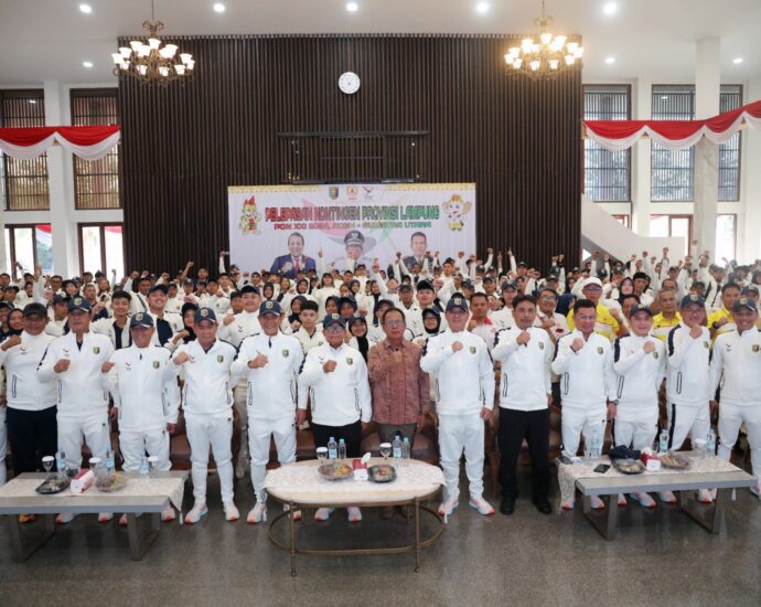 BANDARLAMPUNG(MDSnews) – Pj. Gubernur Lampung Samsudin melepas keberangkatan atlet kontingen Lampung untuk berlaga dalam ajang Pekan Olahraga Nasional (PON) XXI Aceh-Sumatera Utara (Sumut) 2024 di Aula Mahan Agung, Rumah Dinas Gubernur Lampung, Bandarlampung, Kamis (29/8/2024).
