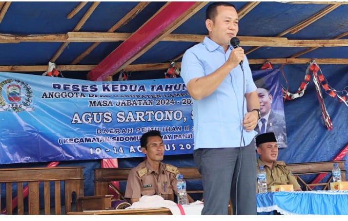 LAMSEL – Anggota DPRD Lampung Selatan, Agus Sartono, memanfaatkan masa reses untuk menyerap aspirasi dan sekaligus berdialog untuk mengetahui persoalan yang di hadapi masyarakat, Selasa (12/8/2025).