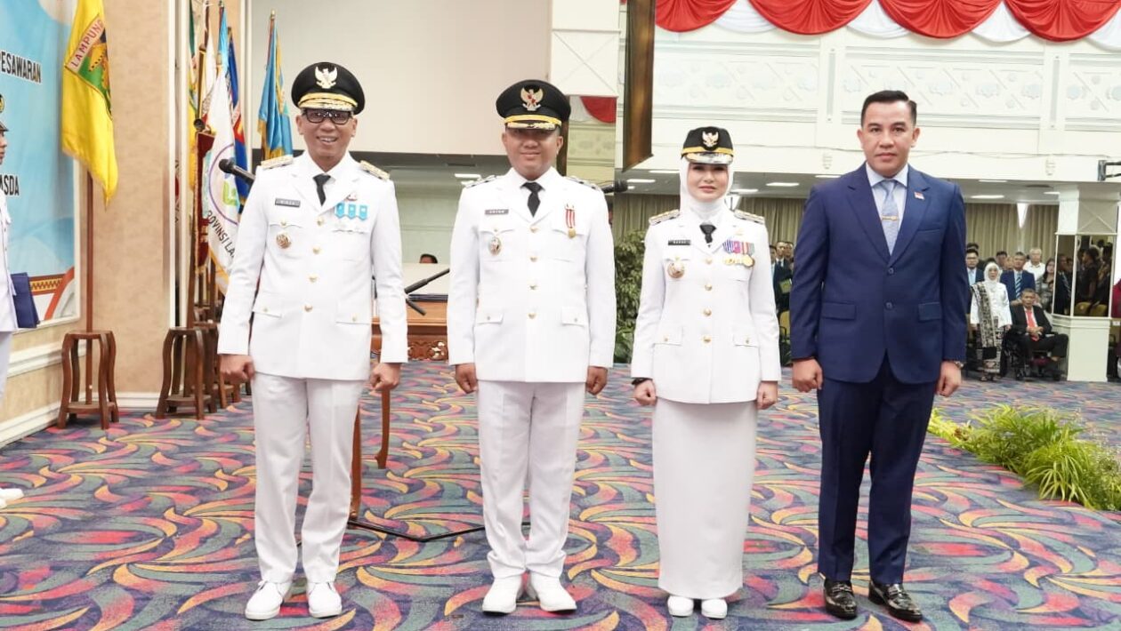 BANDARLAMPUNG- Gubernur Lampung, Rahmat Mirzani Djausal melantik Nanda Indira dan Antonius Muhammad Ali sebagai Bupati dan Wakil Bupati Pesawaran periode 2025–2030 di Balai Keratun, Kantor Gubernur Lampung, Rabu (27/08/2025).