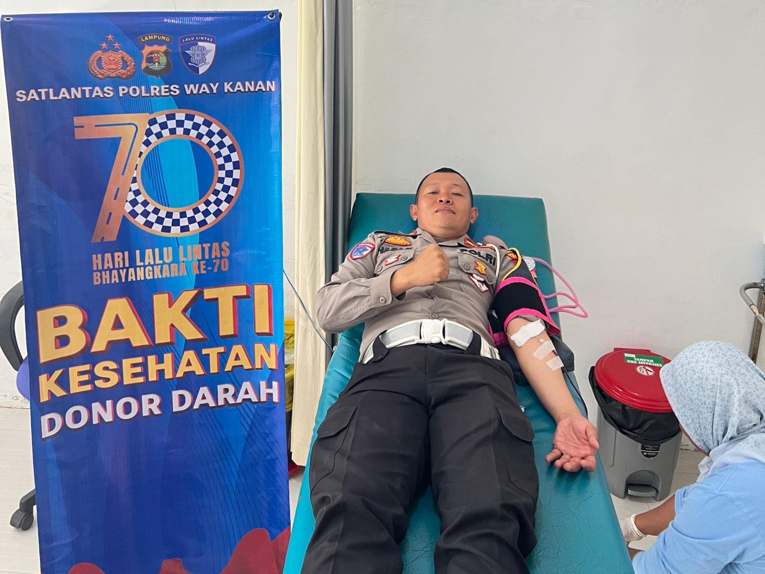 Kegiatan sosial ini dipimpin langsung oleh Kasatlantas Polres Way Kanan, AKP Sulkhan, bersama personel Satlantas. Aksi donor darah ini merupakan bagian dari rangkaian peringatan Hari Lalu Lintas Bhayangkara ke-70 tahun 2025.