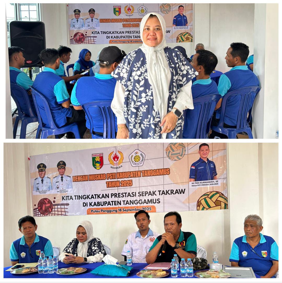 Tanggamus (Medinas_News) — Pengurus Kabupaten Persatuan Sepak Takraw Indonesia (PSTI) Tanggamus menggelar Musyawarah Kabupaten (Muskab) tahun 2025 di Kecamatan Pulau Panggung, Kamis (18/09/2025). Acara berlangsung khidmat dengan mengusung tema “Kita Tingkatkan Prestasi Sepak Takraw di Kabupaten Tanggamus.”