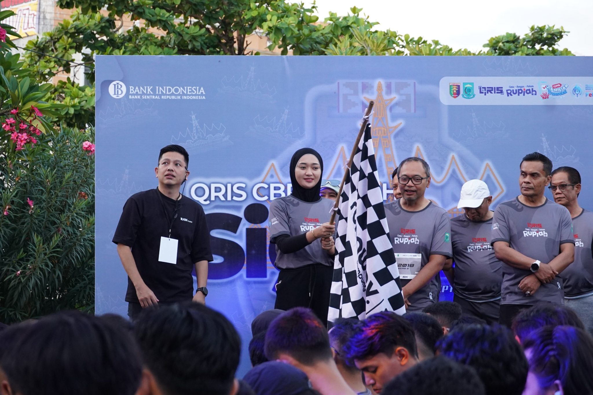 LAMPUNG (MDSNews) – Wakil Gubernur Lampung Jihan Nurlela bersama Kepala Perwakilan Bank Indonesia (BI) Provinsi Lampung Bimo Epyanto, Direktur Eksekutif Departemen Komunikasi BI Junanto Herdiawan, serta Kepala Otoritas Jasa Keuangan (OJK) Provinsi Lampung Otto Fitriandy secara resmi melakukan kick off implementasi QRIS Tap pada kegiatan QRIS CBP Siger Run 2025, Minggu (28/09/2025) di Lampung City Mall, Bandar Lampung.