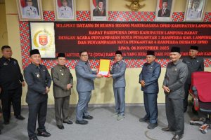Rapat paripurna tersebut dipimpin langsung oleh Ketua DPRD Lampung Barat, Edi Novial, S.Kom., serta dihadiri oleh para Wakil Ketua dan seluruh Anggota DPRD, unsur Forkopimda, Wakil Bupati, Sekretaris Daerah, Pejabat Pimpinan Tinggi Pratama, tokoh masyarakat, dan insan pers.