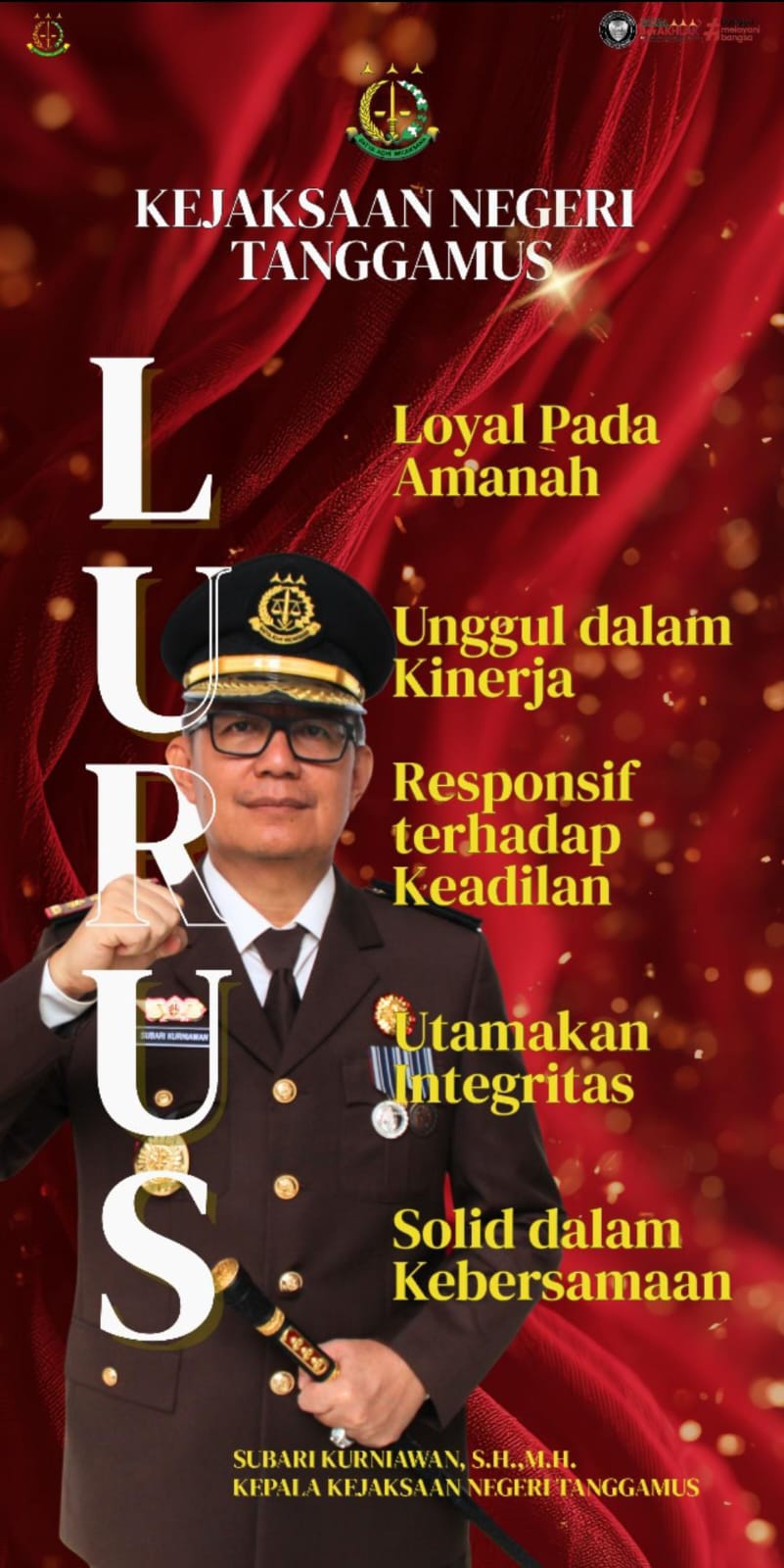 Kepala Kejaksaan Negeri Tanggamus, Subari Kurniawan, S.H., M.H., menegaskan bahwa semangat “LURUS” akan terus menjadi pedoman bagi seluruh jajaran Kejari Tanggamus dalam menjalankan tugas dan tanggung jawabnya. Beliau juga mengajak seluruh masyarakat untuk bersama-sama mendukung Kejari Tanggamus dalam menegakkan hukum dan keadilan di Kabupaten Tanggamus.