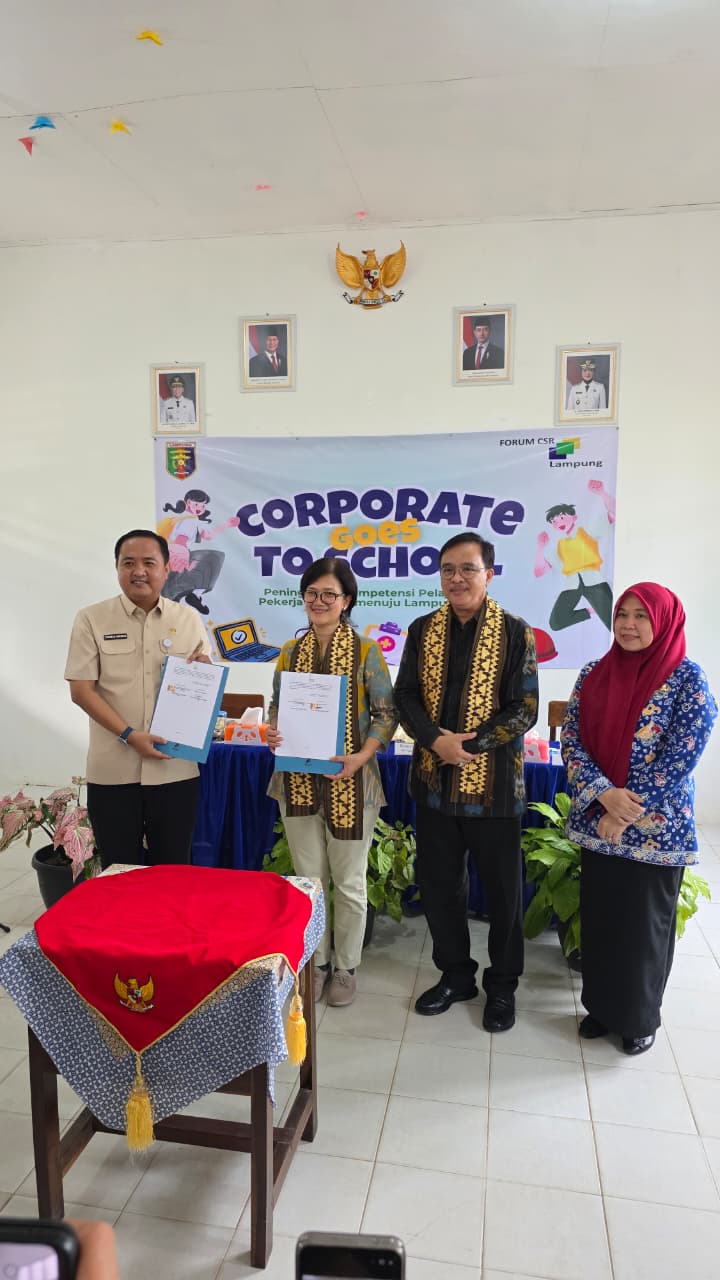 Kegiatan tersebut dihadiri Kepala Dinas Pendidikan dan Kebudayaan Provinsi Lampung Thomas Amirico, S.STP., M.H., Kepala Dinas Tenaga Kerja Provinsi Lampung Dr. Agus Nompitu, dan Ketua Forum CSR Lampung Dr. Veronika Saptarini.
