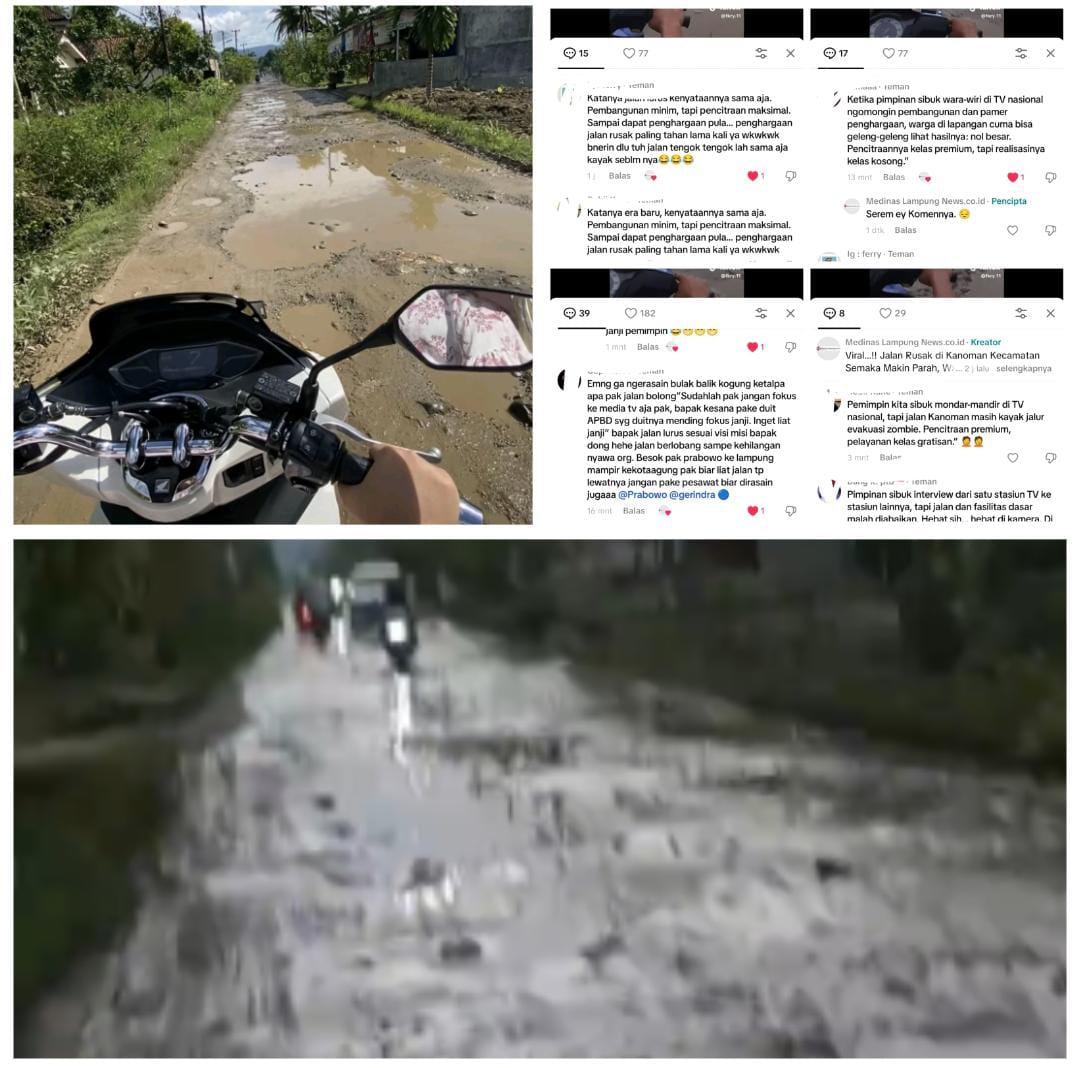 Warganet menyebut video di TV nasional hanya menampilkan “visual pembangunan”, sedangkan masyarakat Tanggamus merasakan langsung jalan rusak yang tak kunjung tersentuh.