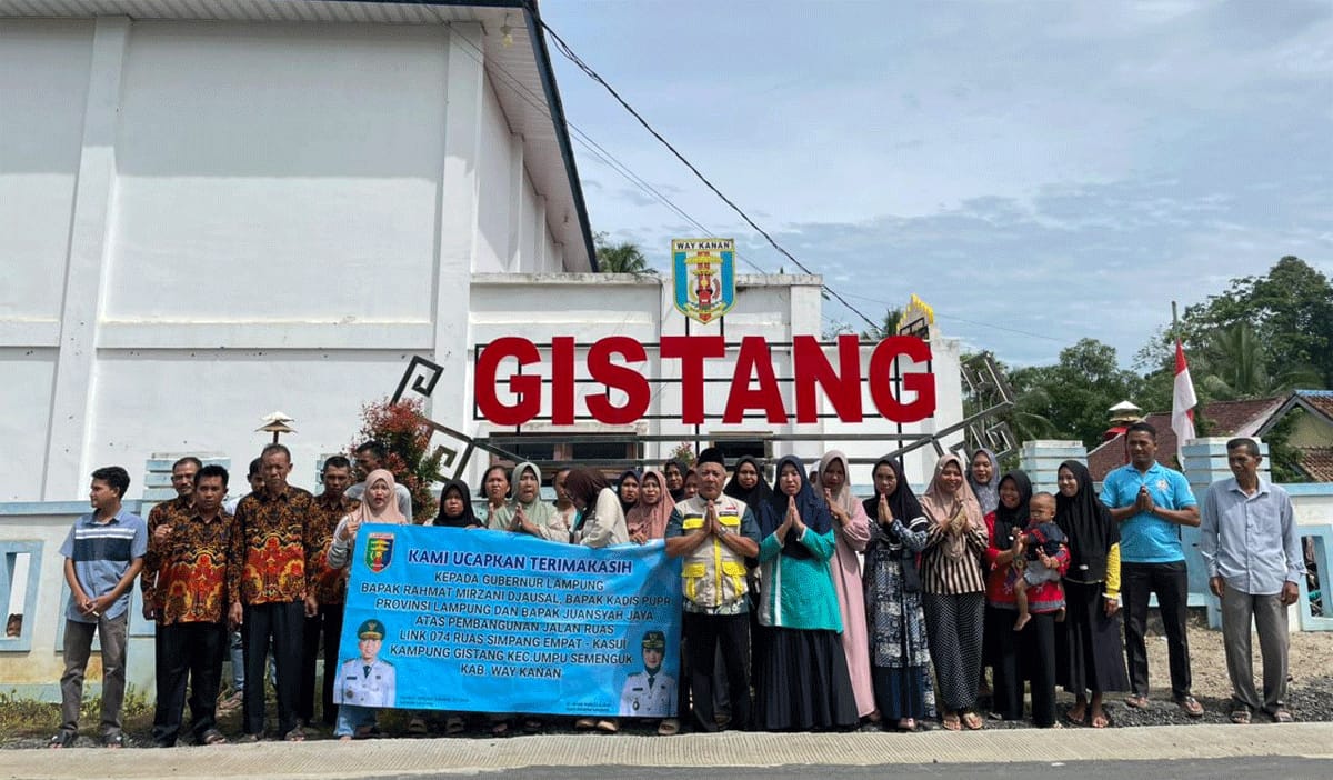 Ucapan terima kasih juga disampaikan kepada Bupati Way Kanan, Ayu Asalasiyah, jajaran PUPR Lampung dan pihak lainnya atas terealisasinya pembangunan jalan provinsi pada ruas Simpang 4 Kasui yang melewati wilayah Kampung Gistang.