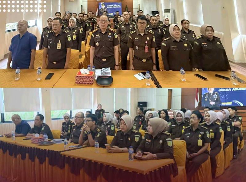 Tanggamus (Medinas_News) — Kepala Kejaksaan Negeri Tanggamus, Subari Kurniawan, S.H., M.H., bersama para Kepala Seksi serta seluruh pegawai Kejaksaan Negeri Tanggamus, mengikuti Kegiatan Kunjungan Kerja Virtual Jaksa Agung Republik Indonesia yang dilaksanakan melalui zoom meeting, pada Selasa, 30 Desember 2025.