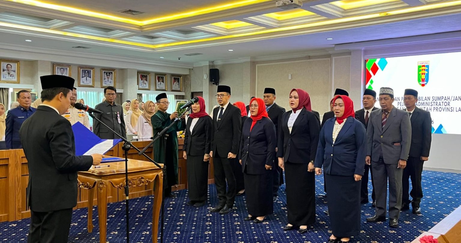 Bandar Lampung (MDSnews) – Sekretaris Daerah Provinsi (Sekdaprov) Lampung, Marindo Kurniawan, melantik 15 Pejabat Administrator (Eselon III) di lingkungan Pemerintah Provinsi Lampung, di Ruang Rapat Utama Kantor Gubernur Lampung, Rabu (10/2/2026).