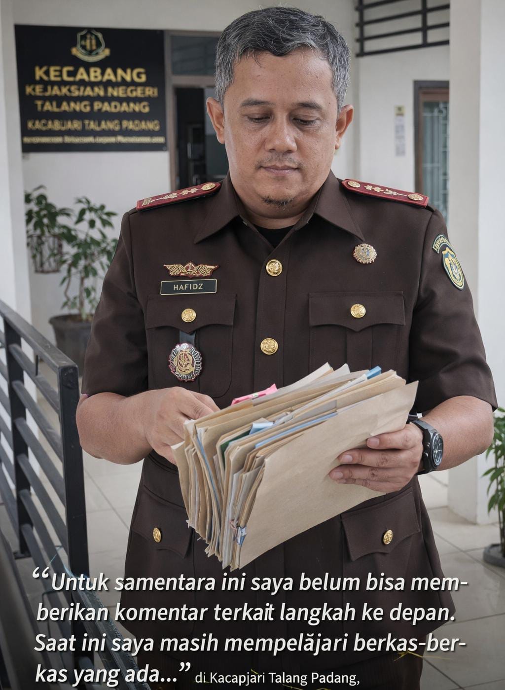 Menurutnya, sikap kehati-hatian ini merupakan bentuk tanggung jawab dalam menjalankan amanah jabatan, guna memastikan penanganan perkara di wilayah Cabang Kejaksaan Negeri Talang Padang berjalan secara profesional dan akuntabel.