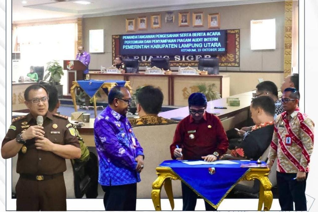 Lampung Utara (MDsNews) – Sekretaris Daerah Kabupaten Lampung Utara Drs. H. Lekok, M.M. mewakili Bupati memimpin kegiatan Sosialisasi Anti Korupsi Tahun 2025. Kegiatan ini digelar di Ruang Siger Setdakab. Lampung Utara, Kamis 23 Oktober 2025. Kegiatan diselenggarakan oleh Pemerintah Kabupaten Lampung Utara bersama Kejaksaan Negeri Lampung Utara. Hadir Kepala Kejaksaan Negeri Lampung Utara Hendra Syarbaini, […]
